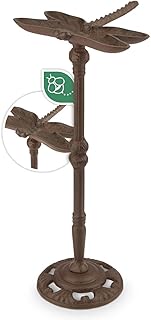 WILDLIFE FRIEND I Dekorative Libelle Vogeltränke stehend, Vogeltränke Garten auf Stab mit Standfuss - Höhe 41cm Futterschale oder als Vogeltränke frostsicher - aus Gusseisen in Libellenform