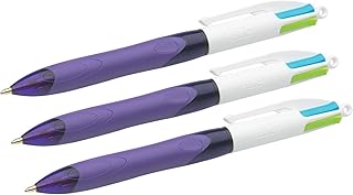 BIC 4-Farb-Druckkugelschreiber 4 Colours Grip Fashion, 0,4mm (3er Pack)