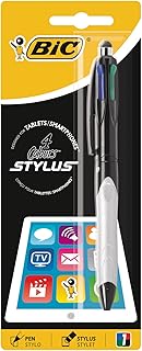 BIC 4-Farb-Druckkugelschreiber 4 Colours Grip Stylus – Mehrfarben Kugelschreiber in Schwarz, Rot, Blau und Grün – Mit Touchpen-Funktion für Tablet und Handy – 1er Pack