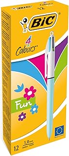 BIC 887777 4-Farb-Druckkugelschreiber 4 Colours Fun – MultifunktionsstiftmitpastellfarbenenMinenunddokumentenechterTinte–Anzahl:12Stück