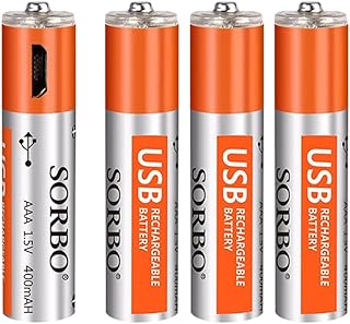 HITRENDS AAA-Batterien - Wiederaufladbare Triple-A-Lithium Batterien - Micro-USB-Ladeanschluss, 1,5 V / 400 mAh, Vorgeladen, 1000-Takt-, Nicht Alkalische/NI-MH-Batterien - 4er-Pack