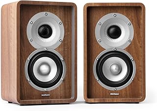 NUMAN Retrospective 1979 S Lautsprecher 2-Wege Regallautsprecher HiFi Boxen (10 cm (4")-Tiefmitteltöner, 10 cm (4")-Passivmembran, Retro-Design, inkl. dunkel braunem Cover) walnuss