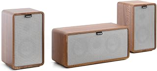 NUMAN Retrospective 1979-S 2.1 Soundsystem Heimkinosystem Lautsprecher-Set (2X Regallautsprecher, 1x Center-Lautsprecher, Retro-Design, inkl. grauem Cover) walnuss