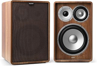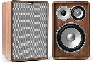 NUMAN Retrospective 1978 MKII Lautsprecher 3-Wege Regallautsprecher Paar Boxen (20cm (8")-Tieftöner und 10cm (4")-Mitteltöner, Hochtöner mit Seidenkalotte, inkl. grauem Cover) walnuss