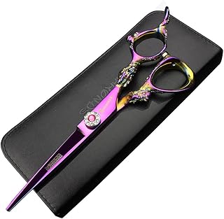 Lila feines muster griff 5.5 zoll 440c hohe härte professionelle friseurschere haarschnitt und haar verdünnen friseur werkzeug (Cutting Scissors)