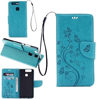 Schutzhülle Für Huawei P9 (5.2zoll) , pinlu® Handyhülle Hohe Qualität PU Ledertasche Brieftasche Mit Stand Function Innenschlitzen Design Schmetterling Blau