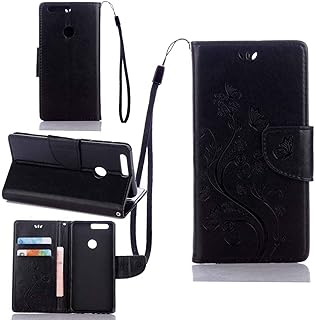 pinlu Schutzhülle Für Huawei Honor 8 Handyhülle Hohe Qualität PU Ledertasche Brieftasche Mit Stand Function Innenschlitzen Design Groß Schmetterling Schwarz