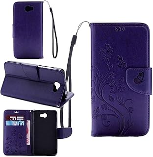 pinlu Schutzhülle Für Huawei Y5 II Handyhülle Hohe Qualität PU Ledertasche Brieftasche Mit Stand Function Innenschlitzen Design Schmetterling Lila