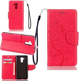 pinlu Schutzhülle Für Huawei Honor 5C Handyhülle Hohe Qualität PU Ledertasche Brieftasche Mit Stand Function Innenschlitzen Design Schmetterling Rose Red
