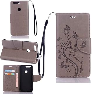 Schutzhülle Für Huawei Honor 8 , pinlu® Handyhülle Hohe Qualität PU Ledertasche Brieftasche Mit Stand Function Innenschlitzen Design Schmetterling Grau