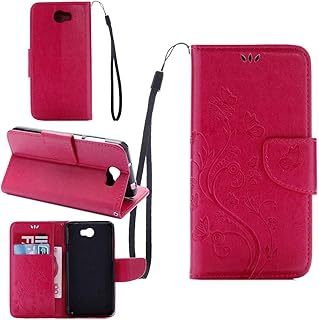 pinlu Schutzhülle Für Huawei Y5 II Handyhülle Hohe Qualität PU Ledertasche Brieftasche Mit Stand Function Innenschlitzen Design Schmetterling Rose Red