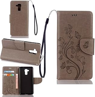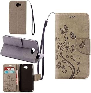 pinlu Schutzhülle Für Huawei Y5 II Handyhülle Hohe Qualität PU Ledertasche Brieftasche Mit Stand Function Innenschlitzen Design Schmetterling Grau
