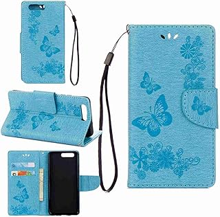 pinlu Schutzhülle Für Huawei P10 Handyhülle Hohe Qualität PU Ledertasche Brieftasche Mit Stand Function Innenschlitzen Design Groß Schmetterling Blau