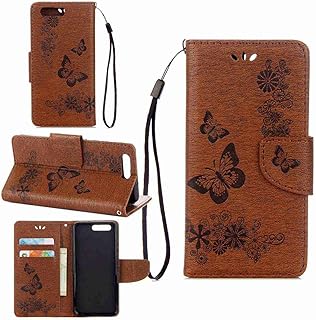 pinlu Schutzhülle Für Huawei P10 Handyhülle Hohe Qualität PU Ledertasche Brieftasche Mit Stand Function Innenschlitzen Design Groß Schmetterling Braun