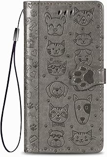 Lederhülle Handyhülle für Samsung Galaxy S21 Hülle Leder, für Samsung Galaxy S21 Katze Hund Klapphülle, Samsung Galaxy S21 Wallet Silikon Schutzhülle, Handytasche für Samsung Galaxy S21 Tasche grau