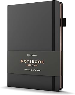 A5 Notizbuch/Notizblock – liniertes A5 Notizbuch Tagebuch mit Premium-Papier, 14,7 x 21,3 cm, Hardcover, 144 Seiten, Rücktasche, Lesezeichen, Gummibandverschluss, College liniert Journal
