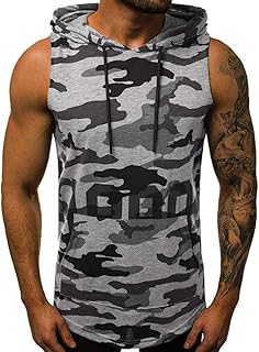 Herren Tank Top Gym Fitness Tops Camouflage Ärmellos Kapuze Hoodie Muskelshirt Sommer Sport Oversize Shirts Mode Männer Slim Fit Party Strand Oberteil Oben Muskel Training Bodybuilding T-Shirt