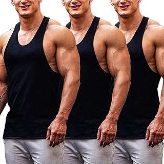 COOFANDY Herren Tank T-Shirt mit Y-Back für Training,Fitness,Bodybuilding,Fitnessstudio,3er Pack