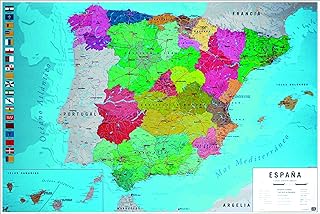 Close Up Mapa Físico Político de España Karte von Spanien (91,5cm x 61cm) + 2 St. Schwarze Posterleisten mit Aufhängung