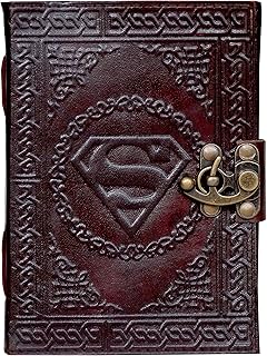 Handgefertigtes Superman-Tagebuch aus geprägtem Leder, unliniertes Papier, braunes Tagebuch, Notizblock, Geschenk, 17,8 x 12,7 cm (braun)
