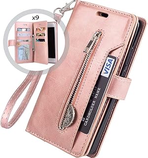 Hnzxy Kompatibel mit Huawei P20 Hülle,PU Leder Tasche Flip Case Cover Handyhülle Reißverschluss Geldbörse mit 9 Kartenfächer Lederhülle Magnet Handy Schutzhülle Klapphülle,Rose Gold