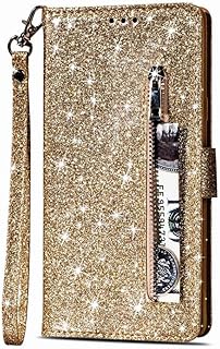 Hnzxy Kompatibel mit Samsung Galaxy Note 20 Ultra Hülle,Bling Glänzend Glitzer Schutzhülle Brieftasche PU Leder Tasche Flip Cover Handyhülle Reißverschluss Geldbörse Kartenfächer Lederhülle,Gold