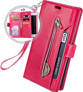 Hnzxy Kompatibel mit Samsung Galaxy S20 Hülle,PU Leder Tasche Flip Case Cover Handyhülle Reißverschluss Geldbörse mit 9 Kartenfächer Lederhülle Magnet Handy Schutzhülle Klapphülle,Rot