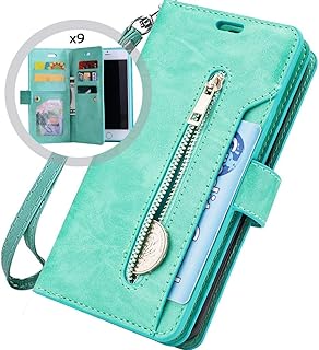 Hnzxy Kompatibel mit Samsung Galaxy S10e Hülle,PU Leder Tasche Flip Case Cover Handyhülle Reißverschluss Geldbörse mit 9 Kartenfächer Lederhülle Magnet Handy Schutzhülle Klapphülle,Grün
