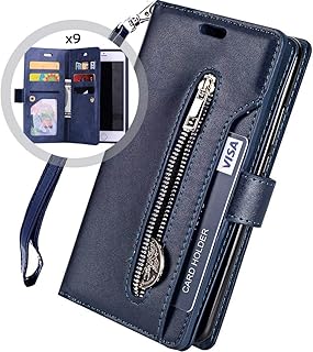 Hnzxy Kompatibel mit Samsung Galaxy A10 Hülle,PU Leder Tasche Flip Case Cover Handyhülle Reißverschluss Geldbörse mit 9 Kartenfächer Lederhülle Magnet Handy Schutzhülle Klapphülle,Blau