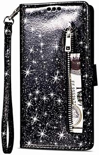 Hnzxy Kompatibel mit Samsung Galaxy Note 20 Ultra Hülle,Bling Glänzend Glitzer Schutzhülle Brieftasche PU Leder Tasche Flip Cover Handyhülle Reißverschluss Geldbörse Kartenfächer Lederhülle,Schwarz