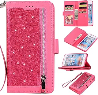 Hnzxy Kompatibel mit iPhone 7 Plus Hülle,iPhone 8 Plus Hülle,Bling Glänzend Glitzer Schutzhülle Brieftasche PU Leder Tasche Flip Cover Handyhülle Reißverschluss Geldbörse Kartenfächer Lederhülle,Rot