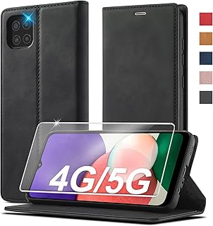 OCASE Samsung Galaxy A52S 5G Hülle, Samsung A52 5G Hülle,[Panzerglas Schutzfolie] [Premium PU Leder] [Standfunktion] [Kartenfach] Flip Case Cover Schutzhülle kompatibel mit Samsung A52/A52S Schwarz