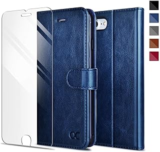 OCASE Kompatibel mit iPhone SE 2020 Hülle iPhone 7 Handyhülle iPhone 8 [ Gratis Panzerglas Schutzfolie ] [Premium Leder] [Kartenfach] Flip Case Etui Schutzhülle für iPhone 7/8/SE 2020 Blau