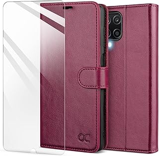 OCASE Hülle Samsung Galaxy A12/M12 Handyhülle [Gratis Panzerglas Schutzfolie] [Premium PU Leder] [Kartenfach] Flip Case Cover Schutzhülle Etui kompatibel mit Galaxy A12/M12 Klapphülle Burgundy