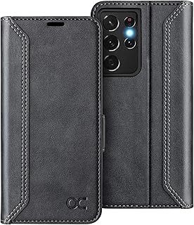OCASE Retro Hülle Samsung Galaxy S21 Ultra Handyhülle Tasche PU Leder Flip Cover Brieftasche Etui RFID Schutzhülle Lederhülle Klapphülle Kompatibel für Galaxy S21 Ultra Schwarz 6,8 Zoll