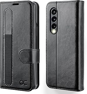OCASE Hülle Samsung Galaxy Z Fold 3 5G Handyhülle mit S Pen Halter [Premium PU Leder] [Kartenfach] Case Cover RFID Schutzhülle Etui Klapphülle für Galaxy Z Fold 3 Schwarz Aktualisierte Version