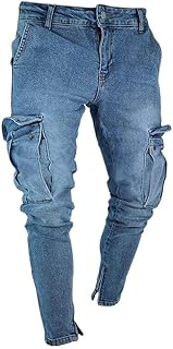 Fannyfuny Mode Herren Destroyed Jeans-Hose mit Taschen Reißverschluss Herren Slim Fit Jeans Denim Used Look Mit Destroyed-Optik Teen Jungen Party Kleidung Hellblau S-XXXXL