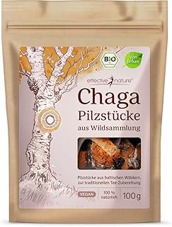 Effective Nature Bio Chaga Pilz - 100g - Brocken, getrocknet aus Wildsammlung - Für Chaga Tee in Bio-Qualität - Aus Estland