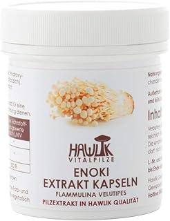 Hawlik Vitalpilze - Enoki Extrakt - 60 Kapseln - 300 mg Vitalpilz Extrakt - 55 mg Ester-C® - GMP Qualität - Shellbroken