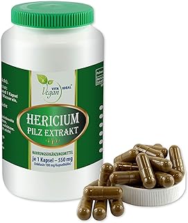 VITAIDEAL VEGAN® Hericium Pilz Extrakt Pulver (Vitalpilz) 90 pflanzliche Kapseln je 550mg, rein natürlich ohne Zusatzstoffe