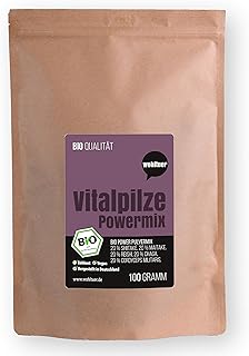Wohltuer Bio Vitalpilze Powermix 100g - Vitalpilz Komplex aus Reishi, Cordyceps, Shiitake, Maitake & Chaga. Vitalpilze Mischung in Bio- & Rohkostqualität