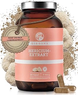 QIDOSHA® Hericium Extrakt Kapseln hochdosiert, 180 Stk, 1300 mg Hericium Extrakt pro Tagesdosis, Igelstachelbart, Löwenmähne Vitalpilz, vegan, laborgeprüft